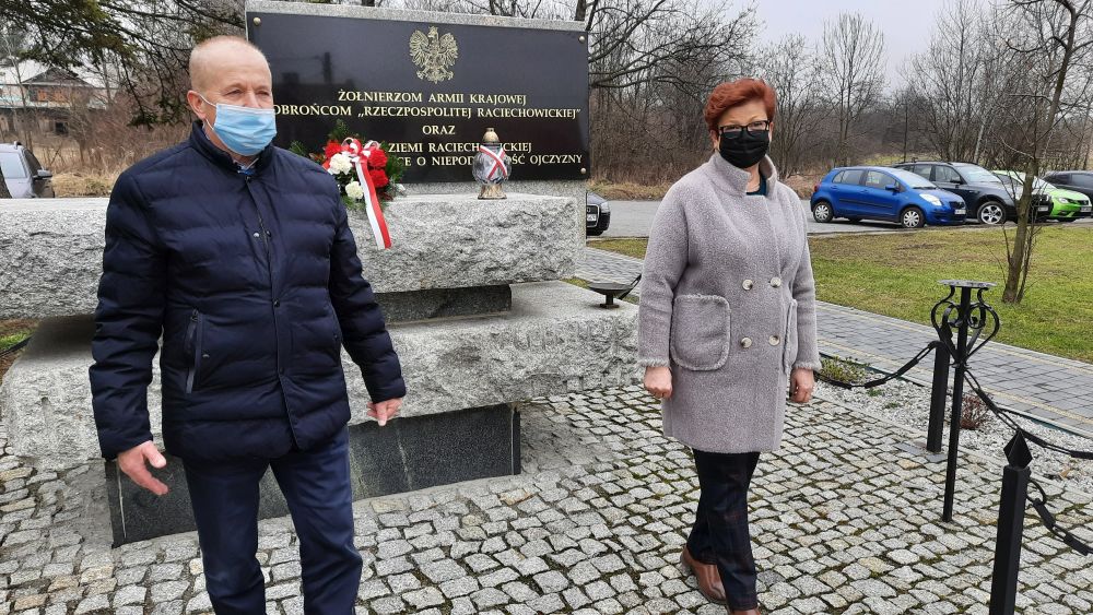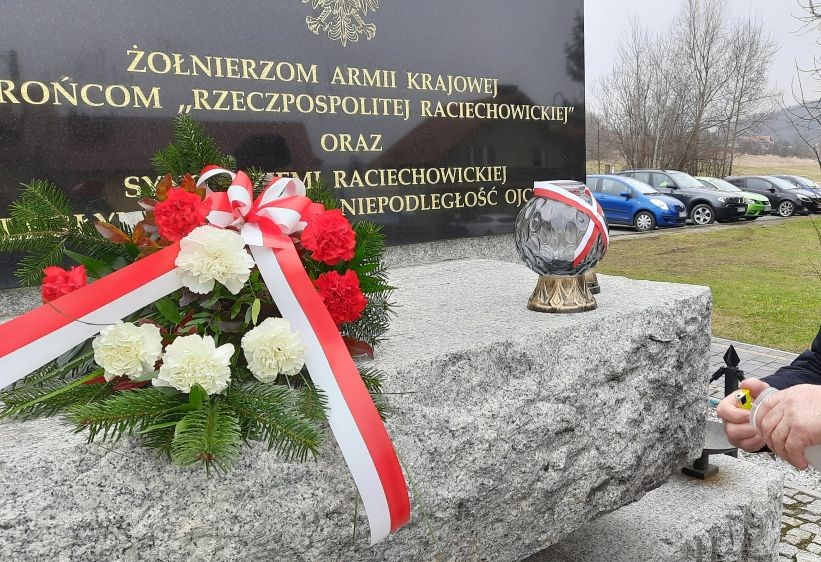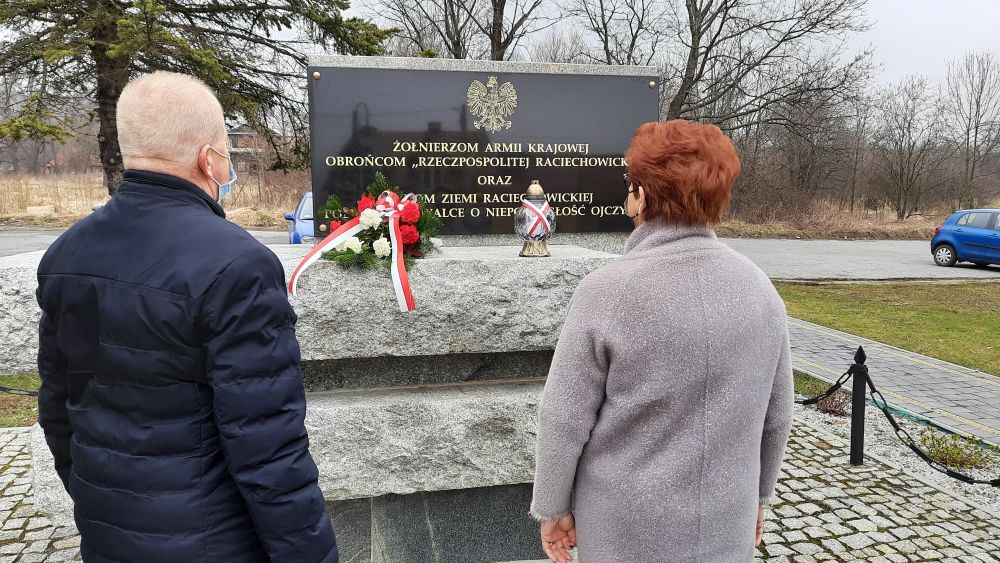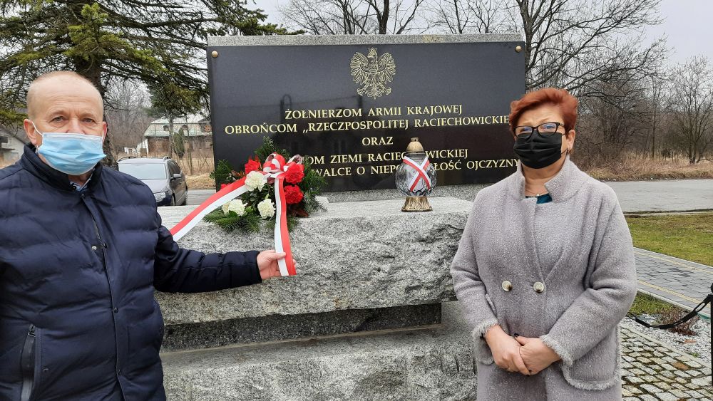 W poniedziałek 1 marca, w Narodowym Dniu Pamięci Żołnierzy Wyklętych, Wacław Żarski, Wójt Gminy Raciechowice i Halina Adamska - Jedrzejczyk, Zastępca Wójta złożyli kwiaty i zapalili znicz przy pomniku poległych w walce o niepodległość Ojczyzny.